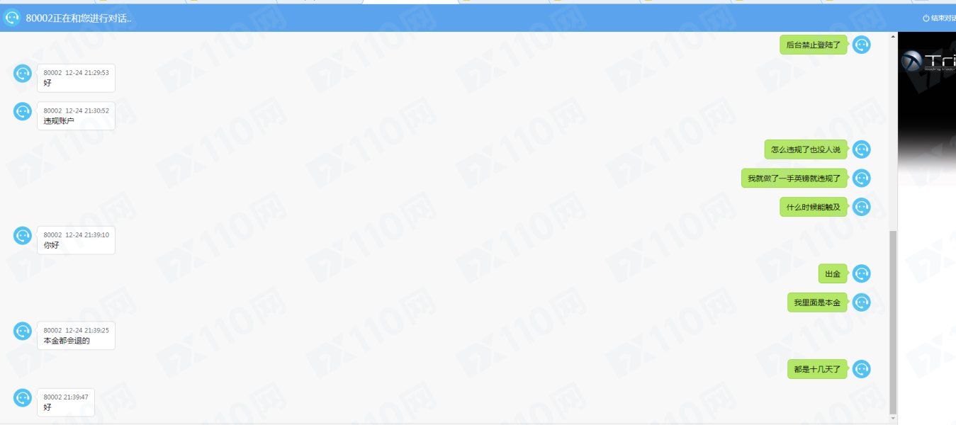 本人去年12月交易时被平台关闭账户,说我哪里违规了,没有任何凭据就禁用我账户了,当时账户是盈利状态说之能出本金,但是要等,再后来问客服就没有下文了,邮件也都是石沉大海。表面上继续到处推广,实际上已经无法出金了。各位朋友大家注意了,有钱的快跑吧,现在跑都不一定能出来了。