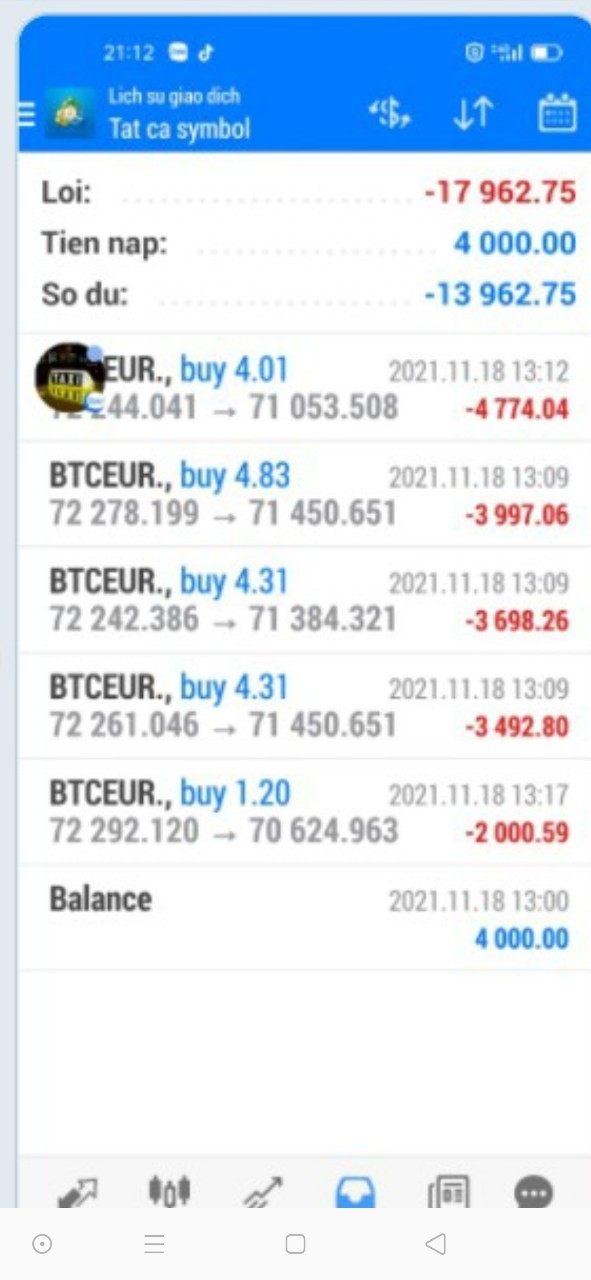 Tôi tham gia đầu tư có chia lợi nhuận với Rosystyle Wealth tại Việt Nam. Ngày 16/11/2021 tôi rút 4000 USD mà không thể rút được. Tôi có liên hệ bộ phận quản lý tài chính tên Wealth Assistant Zarina (tên trên zalo cá nhân Ngọc Bích) thì được trả lời là ngân hàng đang trong thời gian thanh lý, kiểm toán… nói chung mọi lý do. Đến ngày 18/11/2021 số tiền 4000 USD đó Rostyle Wealth đã nhập lại tài khoản MT4 của tôi và họ tự giao dịch cháy hết tài khoản của tôi gần 18.000 USD. Tôi liên hệ với Ngọc Bích và được cô ấy trả lời để tìm nguyên nhân, với lại vốn của tôi quá ít, hứa này hứa nọ cho qua và tới giờ vẫn không thực hiện bồi hoàn theo như cam kết ban đầu và khóa thông tin không liên lạc được. Tôi thấy có dấu hiệu “lừa đảo” và “gian lận” trong giao dịch để rút hết tiền của tôi. Tôi đề nghị Rosystyle Wealth và Wealth Assistant Zarina (Ngọc Bích) bồi thường 18.000 USD cho tôi, đồng thời cảnh báo với mọi người sàn giao dịch Rosystyle Wealth “lừa đảo”. Mọi người ai đã có giao dịch với sàn này bị lừa như tôi thì cùng nhau lên tiếng tố cáo để các Cơ quan chức năng vào cuộc điều tra việc chiếm đoạt tài sản của sàn Rosystyle Wealth.