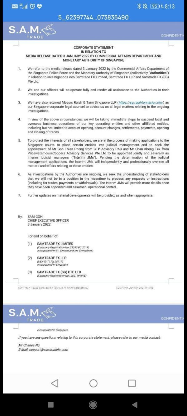 Since SAMTrade is regulated in Australia, why a small case in Singapore could affect withdrawal for all account? Now, I cannot withdraw from my account