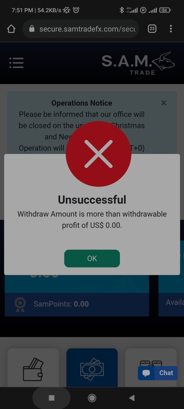 غير قادر على الانسحاب من حساب التداول