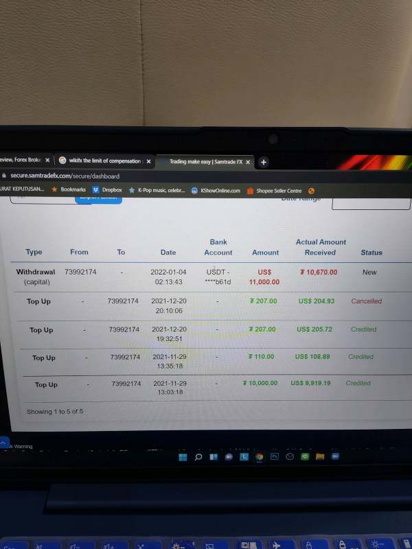 I cannot withdraw my funds in the SamTrade since 4 January 2022. Please help