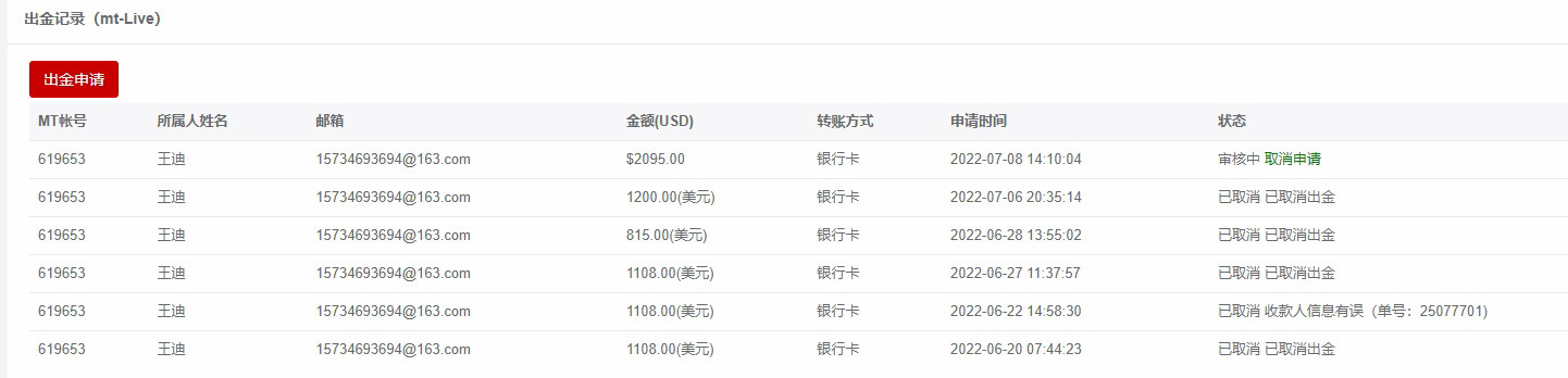 上个月20号出金,到现在没有一次成功