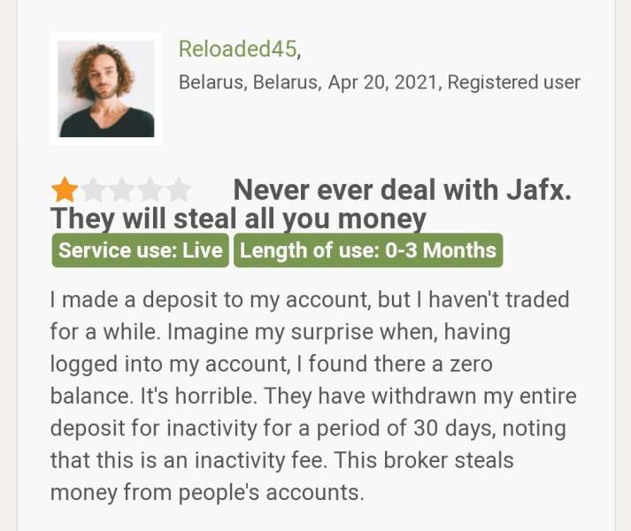 A client has all his balance reduced to zero due to inactivity in trading. He claims JAFX stole his money.