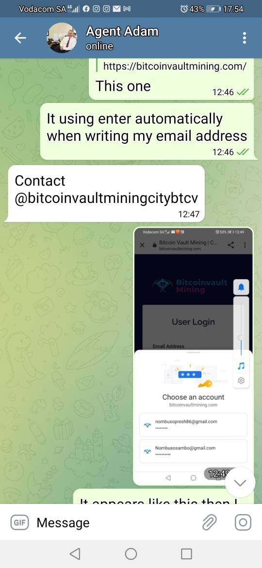 I invested with bitcoinvault mining R162 000 in total. When I was about to withdraw they told me my account is deactivated I must activate it with $8000, they make me took a loan I will replace it my profit is very high I must not stress, please help get my money back