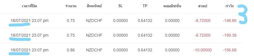 เรียงลำดับรูป 1-4รูปที่ 1 ผมได้เปิดออเดอร์ Sell ไม้ละ 1 lot ไว้ 3 ไม้ตอนวันศุกร์ และรูปนี้ผมได้แคปไว้ตอนวันเสาร์ เวลา 12.04 ซึ่งมันเป็นแดนบวกแล้วรูปที่ 2 คือรูปของวันนี้เมื่อเวลา 07.46 ซึ่งผมต้องบวกแล้ว แต่ผมดันเห็นว่าออเดอร์ผมหายไปไหน รูปที่ 3 คือรูปที่แสดงประวัติออเดอร์ของ โบรคเกอร์ ผมจึงอึ้งว่าทำไมออเดอร์ผมถึงไปถูกปิดตอนวันที่ 18/07/64 เวลา 23.07 ทั้งๆที่ตลาดยังไม่เปิด รูปที่ 4 คือรูปที่แคปมาจาก mt4 ออเดอร์ที่ผมเปิดไม้ละ 1 lot มันดันเหลือเท่านี้ และที่งงไปกว่านั้น คือ ทำไมออเดอร์มันไปถูกปิดที่ราคา 0.64600 ของวันที่ 16 ทั้งๆที่ วันเสาร์มันยังอยู่แล้วเข้าแดนบวกแล้ว