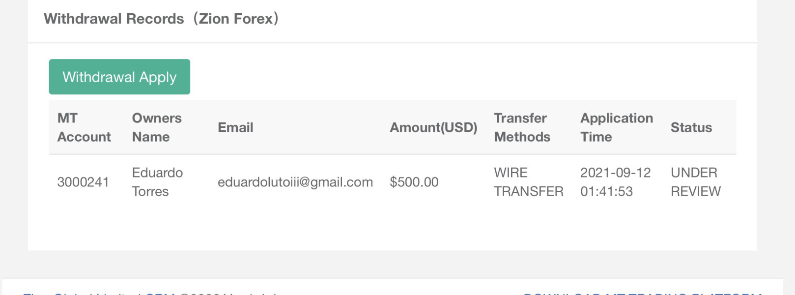 I submitted a withdrawal request in September, 2021. I have not received any response from the company nor have I received any funds. The amount of the withdrawal was $500. The following pictures demonstrate that I have an account with the company, that I have the available funds in the account and that I have processed a withdrawal on the date described. l seek a resolution as soon as possible. Thank you!