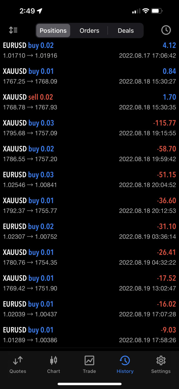 跟你说是找专业的trader可是trade的时候 sl/tp都不会set 一看知道会爆仓却还不止损 就这样给他爆仓 我放了445usd 两个多月一点利润都没有却把我的钱玩光! 没有本事就不要出来做托管真的很烂 那么烂还在各种社交软件上宣传他们的平台有多好多好 发各种好看的记录 实际上根本是要薅羊毛而已