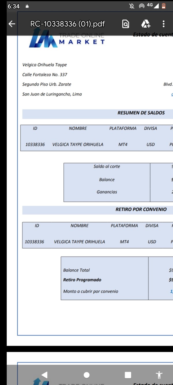 empeze a depositar el 18 del 2023de enero y cada vez me pedían más dinero y para créer me depositaron 50 dólares y me pidieron más luego q el negativo subió y perdí todo me pidieron depositar el negativo así fue y pedían. más q el mercado género dinero y eso tengo q poner para retirar luego q el analista puso dinero q tengo q poner y puse todo para nada q devisa q me banco lo rechaza estodo es mentira asta ahora no me devuelven ya ni me responder y cuidado dicen si sería estafador no te respondería te hablan bonito