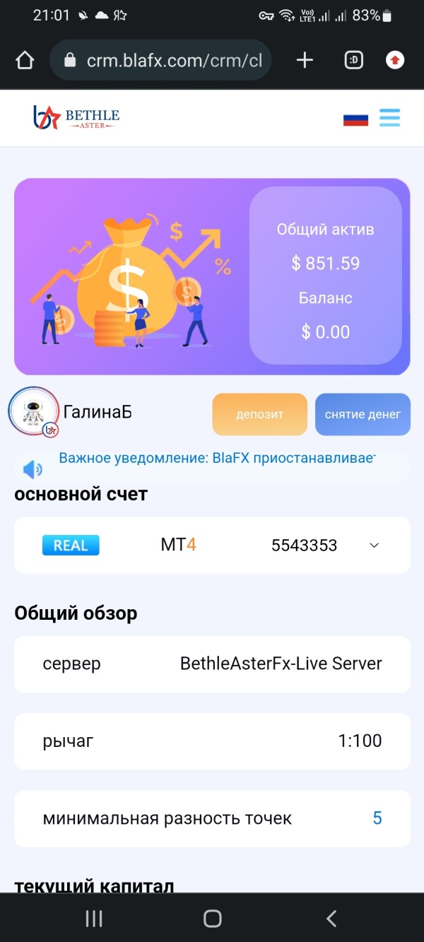 Es ist nicht möglich, Gelder abzuheben BlaFX Plattform.