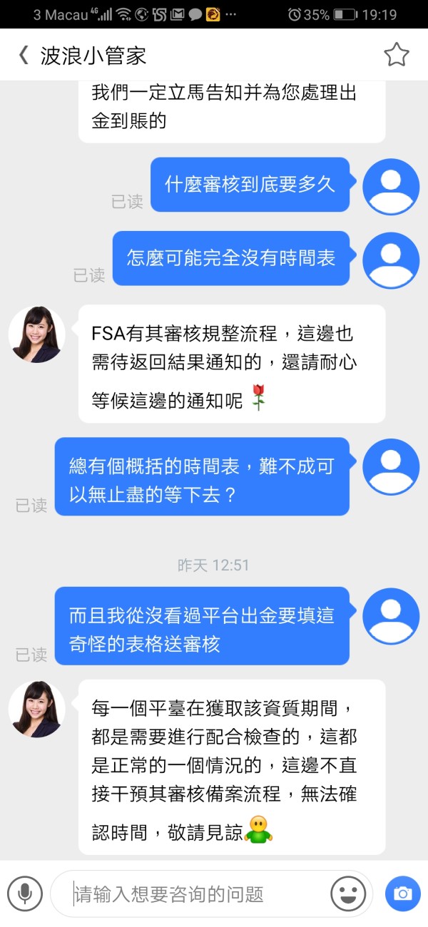 推說現在出金要送FSA審核,問進度全無消息,要多久答案是沒有期限,也就是拖多久都可以,平台贈送突然變多,疑似做最後收割,還辦什麼見面會,卻要再充值10000美元才可以參考,而不是以現有資產一萬以上的用戶,從沒聽過出金要送FSA審核的,FSA本來就不監管外匯活動,取得一個根本無效的監管,早就在為騙局做佈局。