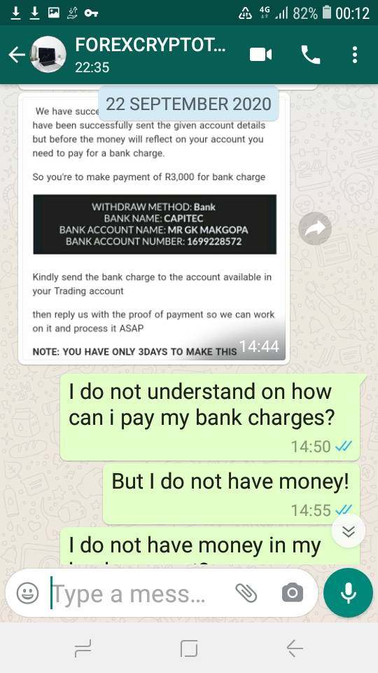 I was also scammed by Forex Cryptotraders. They use Facebook to advertise their trading. I was to told to deposit R500 and I will receive R5000. I did