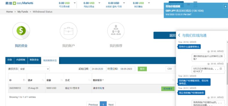 我在这个平台已经有一段时间了。可是上次当自己申请出金的时候,一直到现在也没给批准。从2月24日开始一直等待审核等到现在,而这期间, Easy Markets方面没有任何人员主动联系我。我能做的只有苦苦等待。而这一等,竟然等了一个多月直到今天, Easy Markets方仍然未联系我!