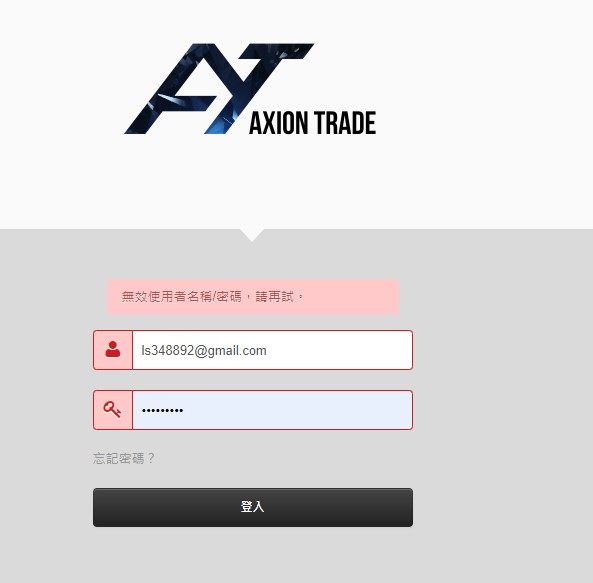 本人於2023/03/29申請Axiontrade交易帳戶並透過USDT-TRC20入金130 USD(如附圖),在2023/03/30透過USDT-TRC20出金129.58 USD(如附圖),Axiontrade遲遲不處理出金,寫信至客服信箱也沒有任何回信(如附圖),並且在2023/04/02時發現客戶端後台登入時直接顯示無效用戶(如附圖),點選忘記密碼也無任何反應