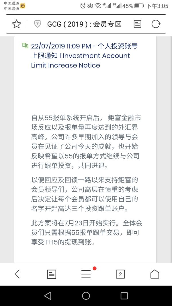 我是一名对外汇比较了解的人,本来刚开始参与巨富这个项目就知道他是个资金盘(外汇投资项目一般利润年化收益高于百分之20,项目运转低于一年的项目10有8.9基本都是资金盘)刚开始做也是抱着侥幸的心理,心想按照这个利润,基本一个月左右就回本了,我就是赌他什么时候关网跑路。我4月份参与的,当时也是和大多人一样,心想自己不会是最后一批填坑的人。结果没玩几天项目就无法出金了,到后来的那个所谓的傀儡(丘富豪)被抓。后来也是透过小道消息才知道那个所谓的丘富豪是给别人当炮灰的(一般资金盘的老板都做贼心虚,哪里还敢大张旗鼓到处抛头露面去宣传资金盘,过后你再跑路的话那能跑的掉吗?那不是找死!)其实真正的幕后的老板是那个所谓的郑总。我想请问各位参与巨富的朋友,你们什么时候见过这个郑总么?你们知道他长撒样么?你们知道他的名字么?你们只听到他的那些鼓励别人做市场的话。到目前为止还有一些接触了几个月外汇的领导人,认为自己是大神还在发一些语音,来忽悠一些小白参与项目。这些所谓的大神你不会想想么,你就算认为项目是真的,是好项目。你好歹让平台把出金的问题解决了,你再拉人的。现在整个项目基本玩不下去了,还在忽悠那些55报单的人入金,说可以出金。第一次可能能够出金,第二次你看还能不能出金?老会员基本没戏了。现在能够到账的基本只有那个马来西亚的郑总带领的那些在到账,其他的人基本没戏了。现在基本就是捏住会员想到账的心态,能骗点出来就是一点。6.30说拿巨富卡可以提现,结果去的人卡是拿到了,但是都是普通的积分卡。8.15的天价月饼……等等 我发这篇曝光文字的目的是让那些有幸看到我这则曝光文字没有参与巨富,而想参与的人尽早打消这个念头。让那些已经参与了巨富这个项目的人不要再作指望了