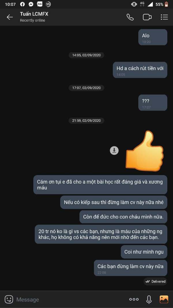 Cannot withdraw money after deposits Cannot close position after open when the position has a loss. The loss positions closed automatically. Cannot contact with IBs and supporter for help. They also blocked me on phone and Social network.