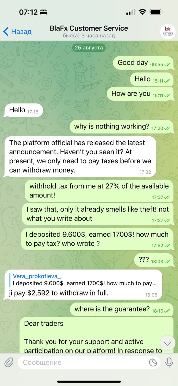 incapaz de retirar fondos de BlaFX
