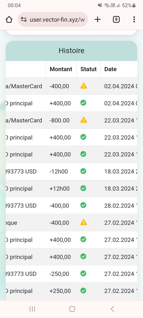Je suis kahina snacel j'ai fait 3 retrait et j'ai rien reçu en contactant mon manager la demandé de payer une taxe de 1200€ et j'ai payé il m'a envoyé un rib sur le quel j'ai effectué le virement mais depuis son numéro de téléphone ne fonctionne plus et le service client ne répond pas à mes appels