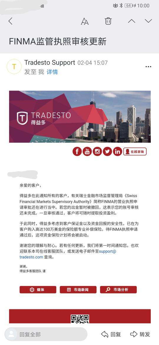 自12月份以来,持续无法出金,咨询客服原因为办理瑞士监管牌照号