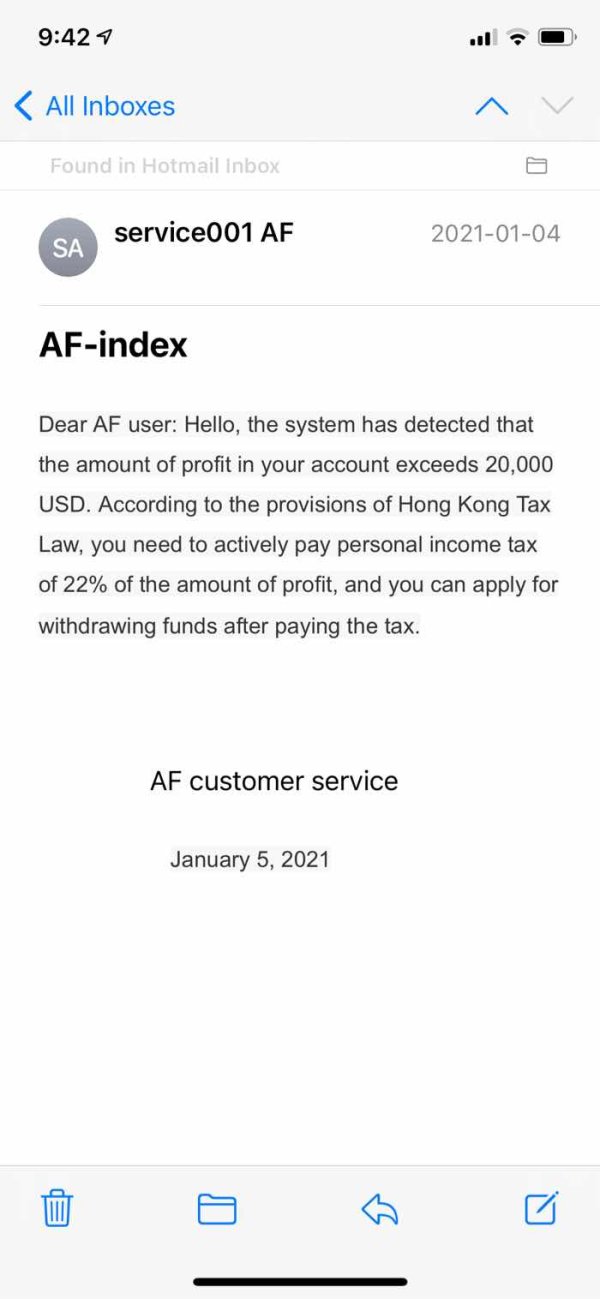 AF indexisang fraud broker, hindi maka-withdraw dito.