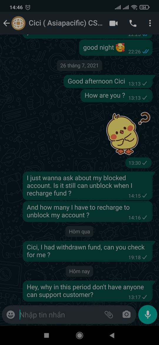 Một người tại Malay nt làm quen tôi qua Whatapp, sau đó giới thiệu tôi cùng trade Bitcoin và vàng. Thời điểm đó nó là Asia Pacific market, gần đây mới chuyển qua Atmos market. Lúc trước tôi vẫn có thế rút nhỏ lẻ khoảng $200, gần đây tôi muốn rút $710 nhưng vẫn đang pending approval, người hỗ trợ không trả lời tin nhắn, đây là 1 web lừa đảo, tôi đã mất hơn $10.000 nạp vào. Nếu có ai như hình nt thì hãy cẩn thận.