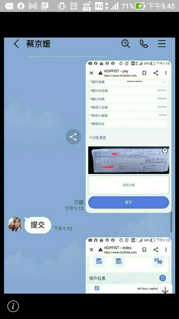 申訴理由 此平台提供比特幣交易,在3/27這天比特幣報價突然下殺到30000,瞬間再拉回44000。導致我交易的比特幣多單瞬間爆倉並超額虧損兩萬美金(我原本入金3000美金左右),原本的獲利全數回吐並且超額虧損。後續查了各家虛擬貨幣報價,3/27這天根本沒有30000這種價格,甚至3/27比特幣還是大漲。 平台商後續開始追討超額虧損,並威脅恐嚇說不給錢就要訴諸法律,各種惡毒語言盡出。完全不承認造假報價的過程,硬要說這是正常滑價(從44000滑到30000?)。請大家注意這家平台商,此平台用非法人頭帳戶入金,用Line群带操作,先以小額出入金獲利,再以互利為理由,誘使大家高額入金,抽成..後面手段為何不得而知~