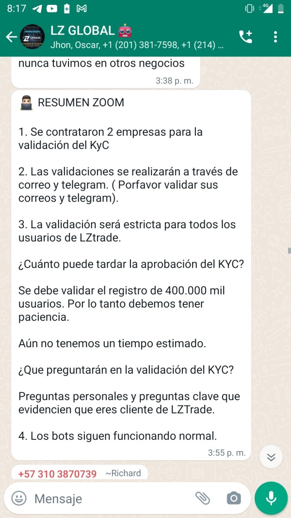 Este broker no permite el retiro de mi capital y ganancias obtenidas de la operación, dicha suma es de 599 USD la cual llevo desde hace dos semanas intentando retirar pero esta empresa comunico un supuesto hackeó que los llevo a suspender los pagos y supuestamente a contratar una empresa para hacer KYC, el cual se hizo desde el momento de registrarse Dejo comunicado de los supuestos líderes que promocionan la captación de dinero para ese sistema donde comunican fichas novedades luego de una reunión con el supuesto corporativo de dicho sistema