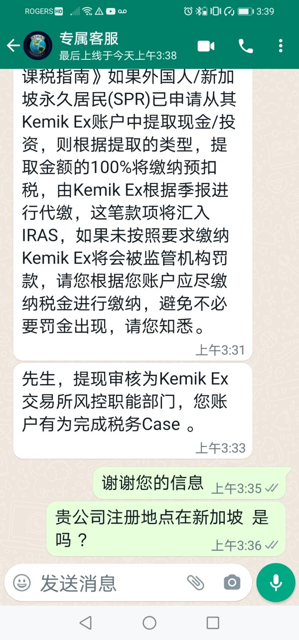 Kemik当你申请提现时会告诉你需要交税 然后给你一个私人的账户要求你电汇过去 接下来他会告诉你没有收到你的缴纳 需要你重新电汇 并且承诺在你电汇完第2笔时才会将第1笔缴纳原路返还 当你要求他出据证明时 他便不再回答你了 不管你放进去哪怕是一分钱 也永远别想再提现出来