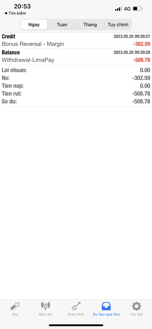 hqua mình cắt hết lệnh và hnay thực hiện lệnh rút hết tiền trên mt4 thì đã trừ tiền nhưng tiền maci không về tài khoản. mong được giúp đỡ. bạn môi giới thì đã xoá hoặc chặn mình