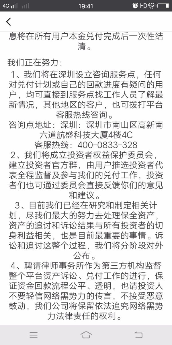 才到formax金融圈投资没多久,到7月就发现体统升级,看不到外汇金额了,联系客服说是系统升级,到了7月10公布说停止中国市场,说8月10号统一出金,可是把资料全部补齐半个月一点反应也没有,联系客服也联系不上,电话也打不通,这下才知道被骗子骗了,然后9月初又通知说会逐步兑付,直到9月8号,formax金融圈app的数据全部清零了,什么记录都没有,怎么办,这下血汗钱,血本无归呀,报警也打不通电话,欲哭无泪呀,吃了哑巴亏,没地方诉苦。希望天眼频道能把这个事件赶紧曝光。帮我们维权。追回损失资金。