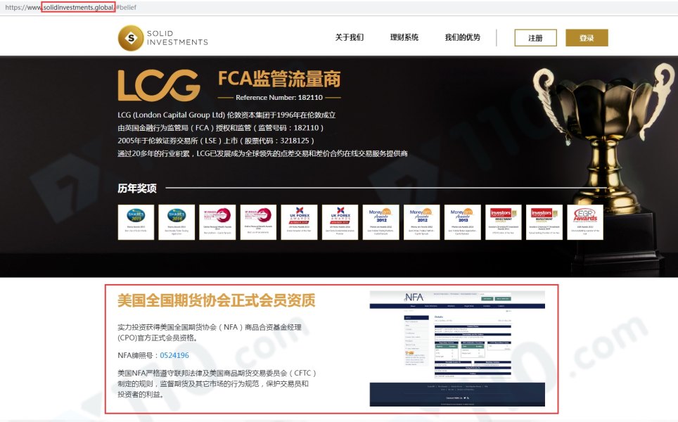 1、实力投资Solid Investments宣称其流量提供商是有英国FCA监管的LCG平台,但是请注意,流量提供商有合规监管,但是与该平台本身的监管情况无关。 2、平台宣称是受美国NFA 0524196 监管的外汇投资平台。按照监管号NFA官网实际查询与公司名不一致 而且查询详情中没有零售外汇资质 其仅仅属于商品合资基金经理(CPOs)的NFA会员资格 不属于零售外汇经纪商