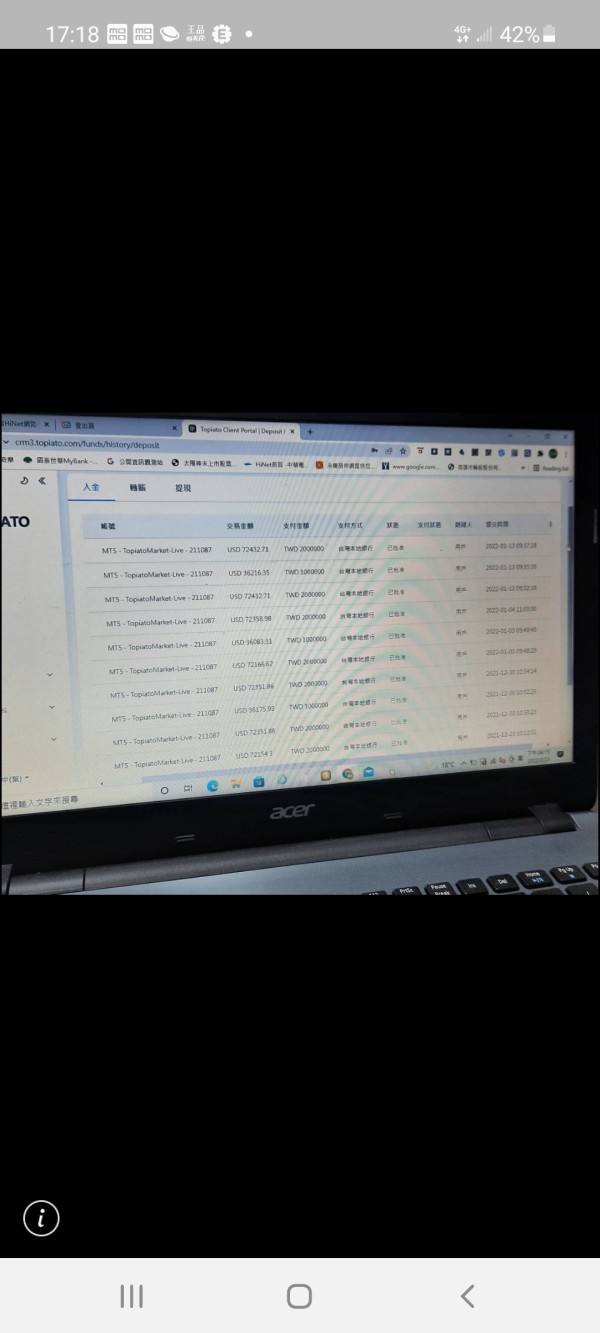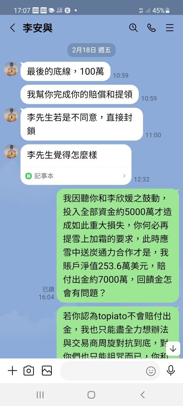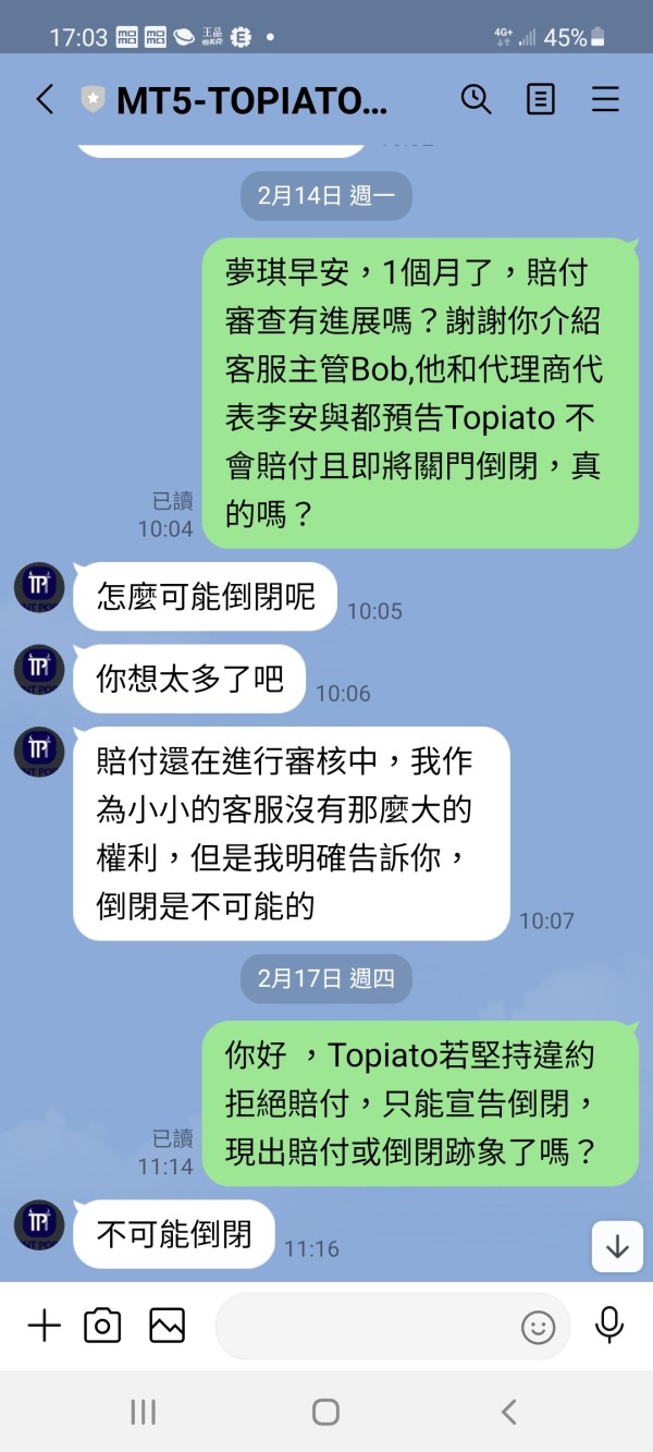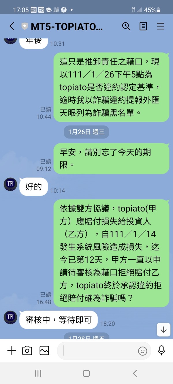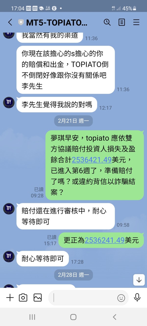 TOPIATOsigner l'accord et induire un dépôt, mais ils m'arnaquent et s'enfuient sans compensation. il provoque la perte de 2536241,19 dollars et ne peut pas se retirer.