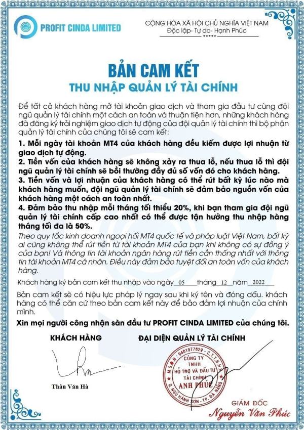 Tài khoản MT 4 của tôi: 2076122, sau khi giao dịch đã không rút được tiền, đề nghị cơ quan có thẩm quyền xem xét giải quyết giúp tôi.