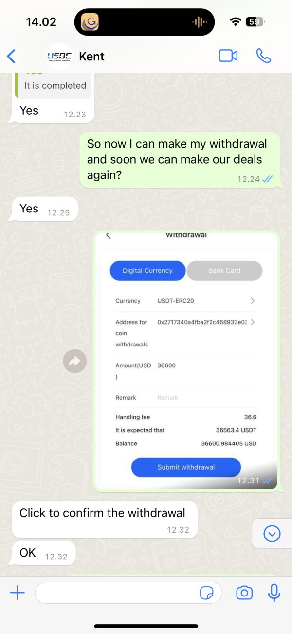 USDC Investment Limitedne pas retirer le montant du solde de mon compte plateforme