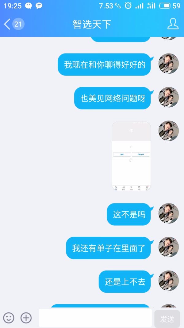 我手机网络很好。里面有单子。老是提示服务器中断请稍后什么狗屁app..联系客户。客户不理我