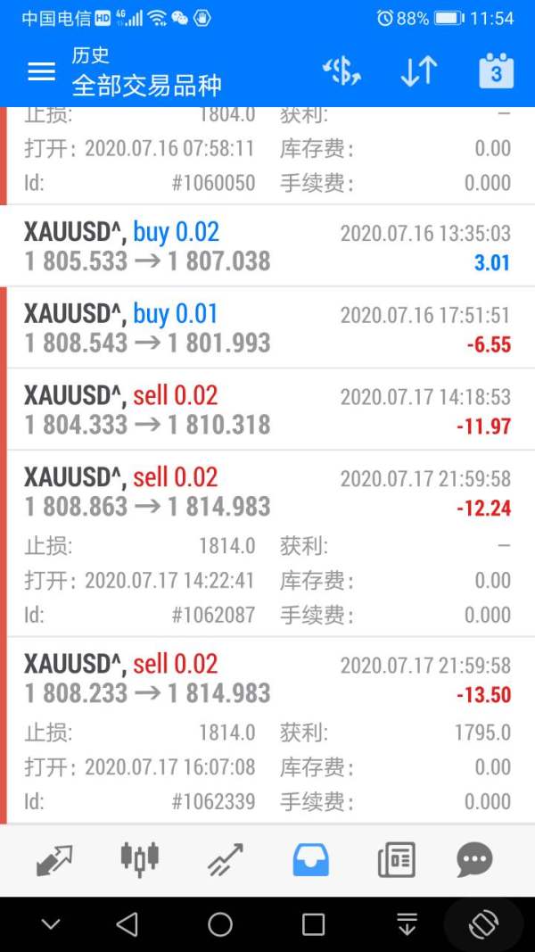 第一张图最后二单止损在1814,最高也1812不到点就变成了打亏损,第二张图就是价格。最后一张图无语了,止损在1772.337,但止损到1751.723,这个止损怎么打掉的[d83d][de31]
