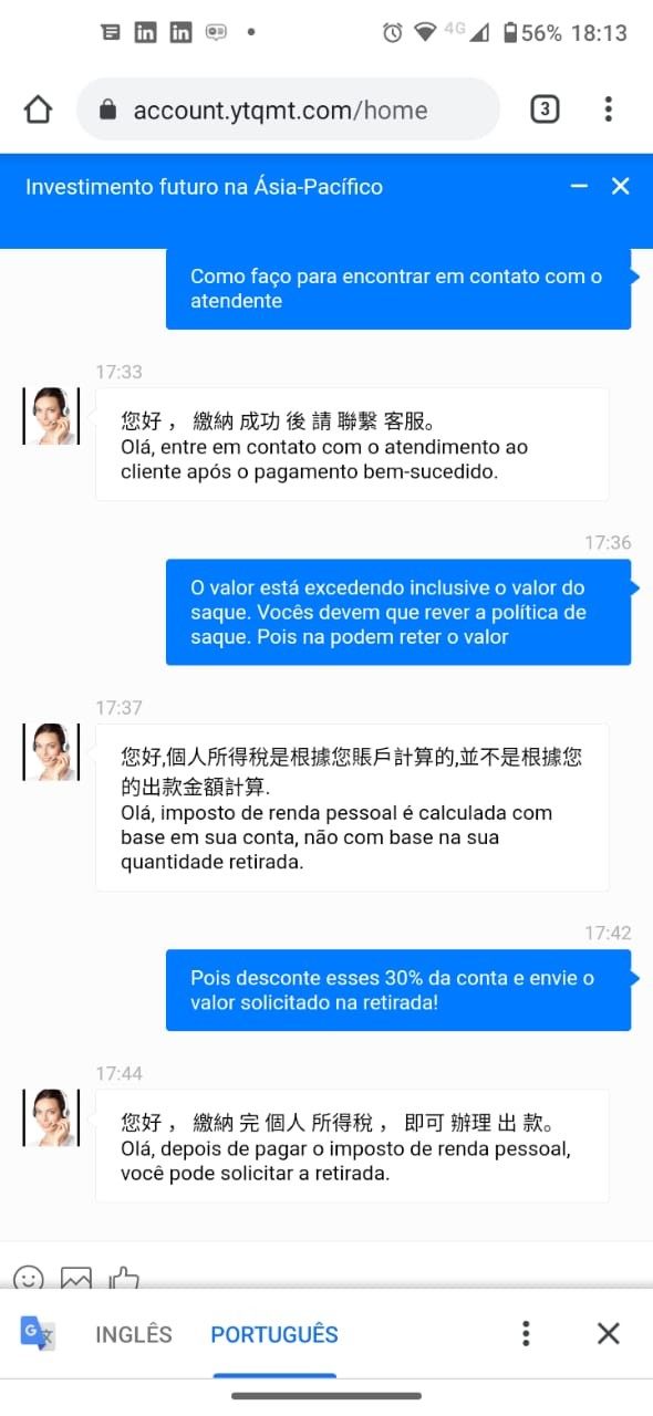 Não consigo fazer saque ou transferência do Asia pacific Futures Investment Limited