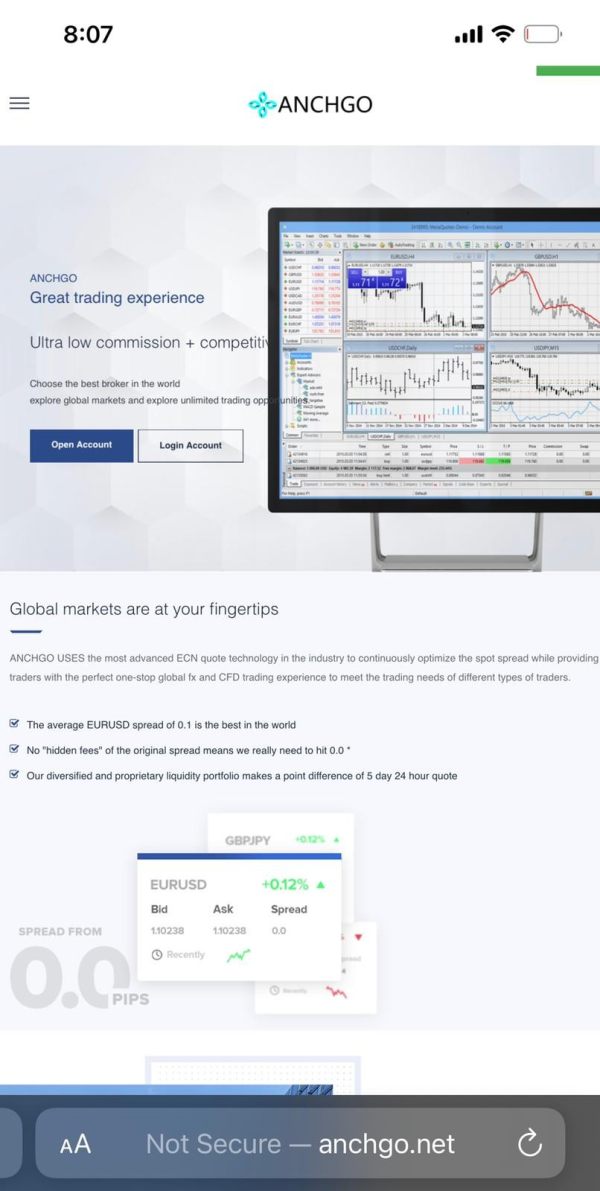 I began investment trading with ANCHGO 4 months ago and its started so well i was making a lot of profit, suddenly my account was disabled and i was told i have to pay a 2% fee in order to reopen my account which i did and my account was opened after which i requested to make a withdrawal of my investment and profit only for me to discover few days later my account no longer existed i had no choice but to employ the services of advisory form Traceasset/ org this later yielded result and i was refunded both my investment and profit. I strongly advise against using this platform they are not to be trusted.