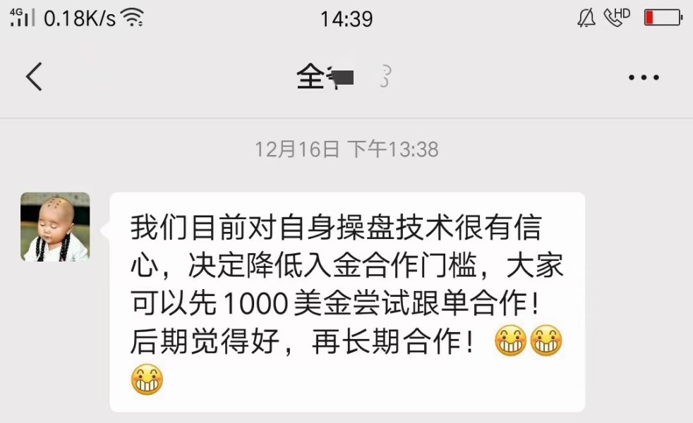 黑心代理先让你入金1000说是体验,盈利后合作,然后修改后台数据,让你看到盈利,让你在这个平台入金,代操作账号。敢入金就叫你爆仓。血本无归,让后将你拉黑,记住头像防止受骗。