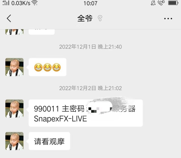 黑心代理以入金1000为诱饵,让你看观摩账号,看到盈利合作,其实是虚假的,后台能修改账号,让你看到盈利,只要入金就叫你爆仓,血本无归,然后拉黑,联系不上,注意头像,不要被骗。
