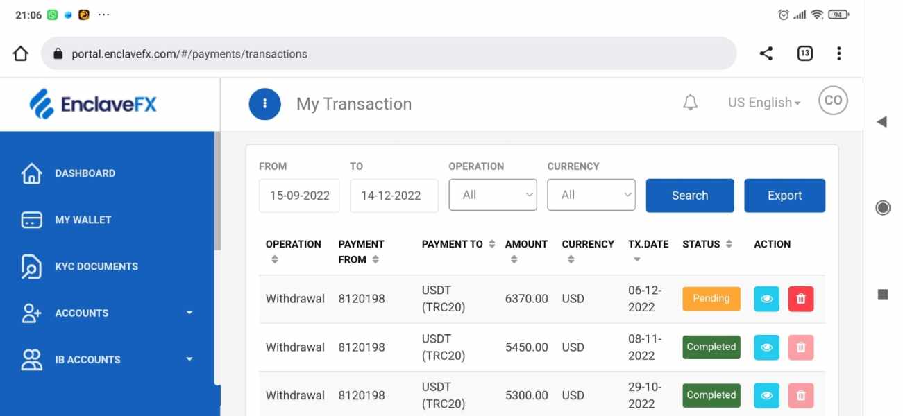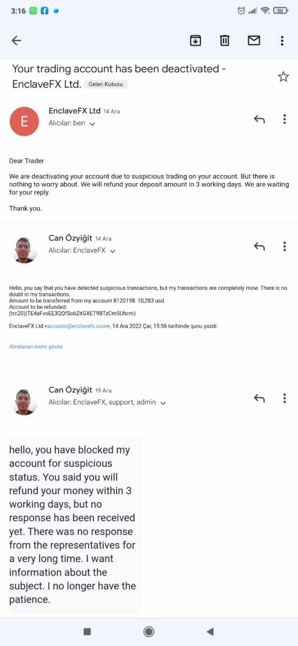 निकासी को अनुशंसित समय के भीतर संसाधित किया जा रहा है और कभी-कभी आज की तरह बेहतर भी। मैं इस प्यारे ब्रोकर, Enclave FX के प्यार में पड़े बिना नहीं रह सकता। यह पांच सितारों के लायक है!