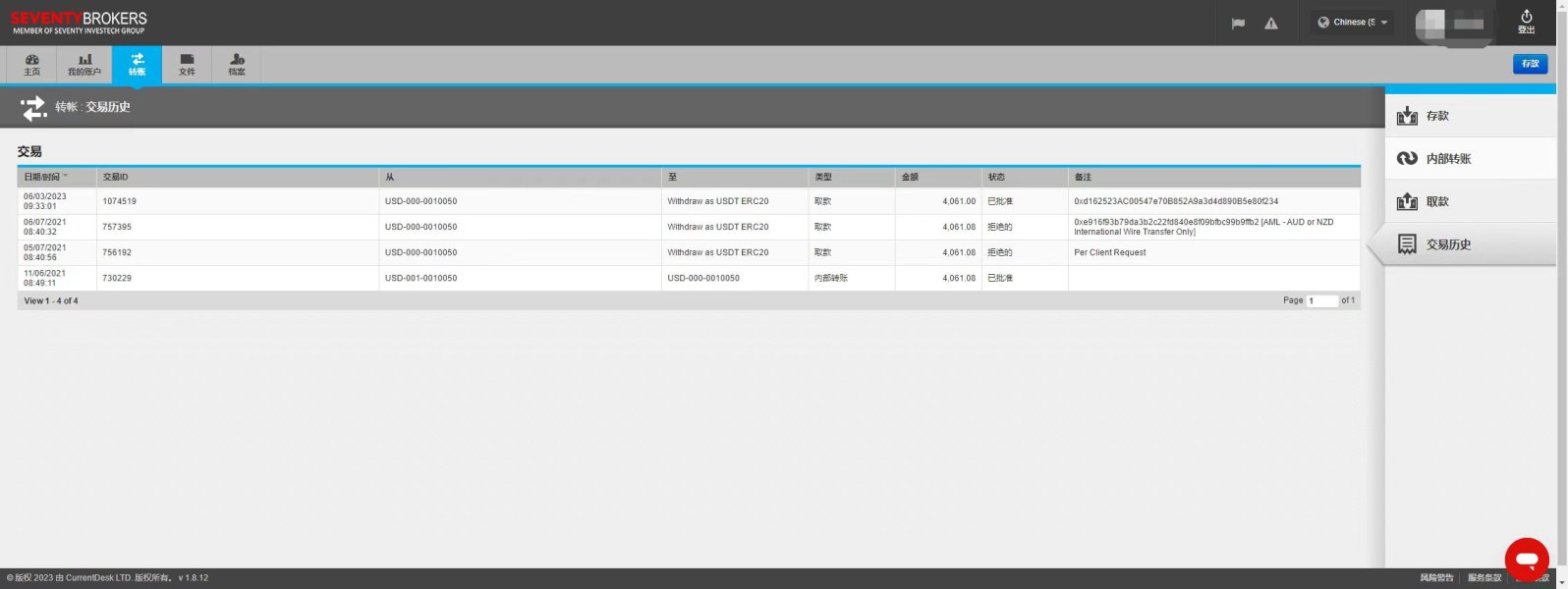 2021年开户入金,直到2023年3月才批准出金。批准之后至今没到账。而且还禁用了后台,询问客服解禁要我提供公安局出具的无犯罪证明,还要求英文的。脑残平台。在此过程中,沟通了上百份邮件。最终解释,承兑商的问题,等待承兑商反馈结果。