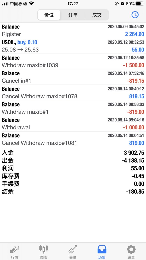 5月14日,本人试图出金819美金,平台方驳回,并直接倒扣我1000美金,后来联系代理查,查了5天都没有结果,5月19日我联系平台客服,客服说是给我多存了1000美金,可是我后台并没有那1000美金,就简单的入金+盈亏利润+佣金-出金,不就等于目前余额吗,平台做贼心虚居然为了819美金故意封我账户,并拉黑我,并更改我后台数据,5月9日MT4升级2264美金转过来MT5账户的改为1164美金,还在5月10日在入金1000美金,平台借此还说那1000美金就是他们错入的,试问自己的账户自己不清楚吗?我让他们拿出证据,他们不拿,我证据确凿,本人承诺自己话千真万确,没有任何一句假话,请还在GKG平台的交易商看清平台的恶行