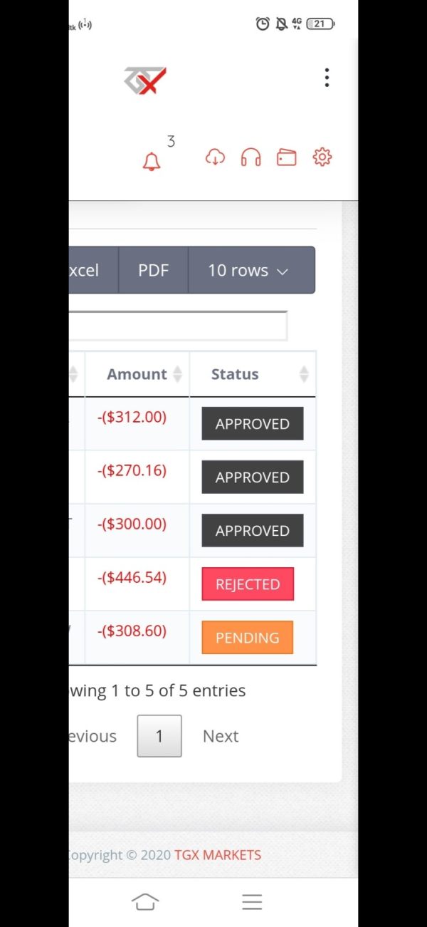 TGX Tidak membayar Withdrawl dan menahan dana