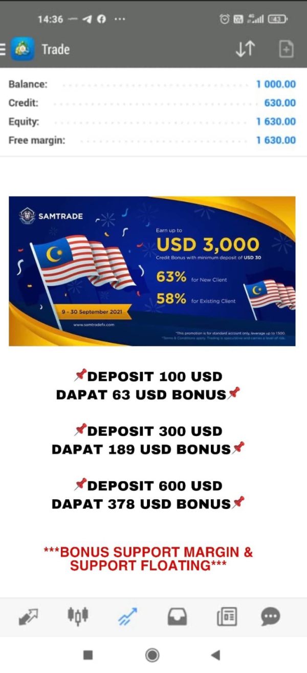 JANGAN GUNA LAGI BROKER SAMTRADE FX . BROKER PALING SCAM DIABAT INI . KENAPA SAYA BERKATA DEMIKIAN ?...YA LAH DEPOSIT 1000 USD DAPAT 630 USD ? KALAU DEPOSIT 100 USD DAPAT 63 USD ?