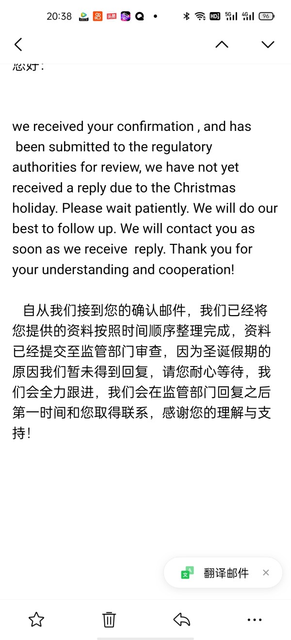 本人在2021年9月26日接触到该平台做外汇投资,起初我们几人共用一个账户入金该平台,出金顺利,后来我们各自开户,分开入金,于2021年11月2日决定以个人账户入金该平台继续做外汇投资,之后一周想要出金遇阻,到现在已经有近三个月的时间,一直没有给予出金,期间同平台通过邮件形式反复沟通确认,通过语言,文件,银行流水,交易截图等详细说明本人资金合法性,没有问题,并不涉嫌反洗钱。平台在邮件中也默认了本人资金合法性。但是,该平台始终不予出金,以各种理由推脱,不给出金。使得本人身心疲惫,极度煎熬。在此恳请派人调查本人出金事件,同该平台沟通,尽快给于本人出金!谢谢!