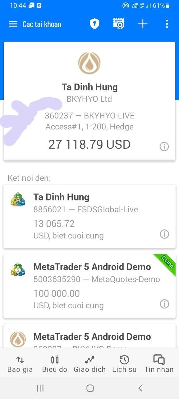 Sàn BKYHYO không có cách thức rút tiền ở trên trang chủ và lấy lý do là kênh rút tiền trên trang chủ bảo trì . Đến hôm nay khi tôi gửi thông tin về tài khoản và ngân hàng của tôi để yêu cầu sàn BKYHYO làm lệnh rút tiền thì bắt tôi nộp phí " Tiền quản lí và bảo trì nền tảng Meta Trader 5 " với số tiền bảo trì là 3% . Tài khoản đầu tư của tôi là 27.118$ và bắt tôi nộp 813$ ~ 18.861.600 VNĐ và nộp qua số tài khoản cá nhân ở Việt Nam thì mới hỗ trợ cho đặt lệnh rút tiền.Điều này rất là vô lý vì không có 1 sàn nào lại có những cái phí vớ vẩn như này. Nếu tôi nạp số tiền phí này vào chắc chắn là sẽ phát sinh thêm những loại phí khác !