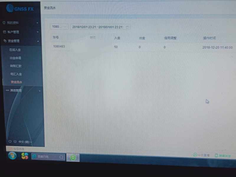 18年12月30日入金到账 19年1月31日入金没到账(测试阶段)没关注外汇天眼前的操作) GNSSFX平台出金最低50美金 关注天眼后才知道此平台不正规 看到的请远离