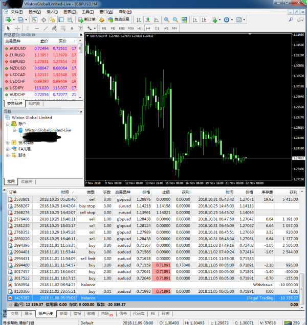 威石资本是黑平台,大家小心,做单盈利不给出金,后台抹除账户资金,入金8000美金,账户盈利到20338美金,出金只打8000本金给我,FX110投诉客服不管,他们交了保护费!说我违规?让我把交易截图证据发给他们,我发了,然后就没有然后了,不理了!