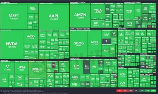 Ikhtisar:Kebijakan tarif Trump berbalik arah, mendorong saham-saham teknologi besar dan sektor konsumen non-primer melonjak tajam. Nvidia (NVDA-US) ditutup naik 18,72%, Tesla (TSLA-US) melonjak 22,69%, dan App