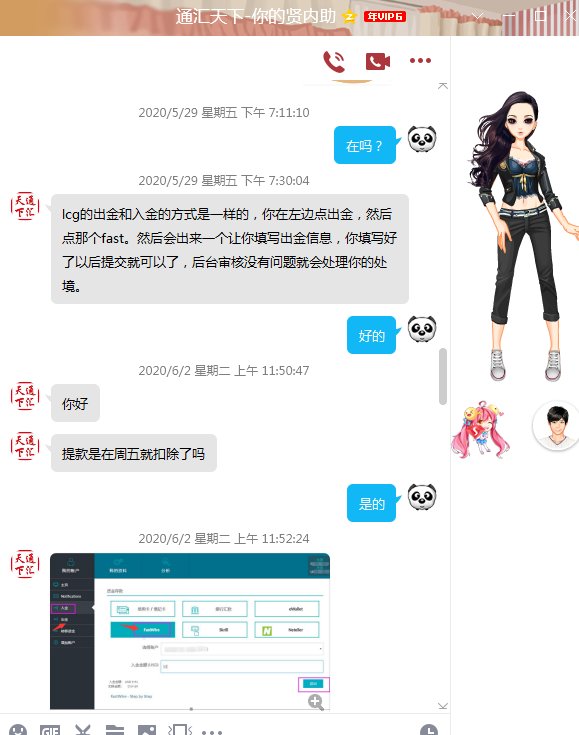 LCG是黑平台,只有一个网站可以打开,那个就是www.lcg-chi.com.哪些客服各种拖,拖到了今天2020,06.03晚上11点48我在去查看的时候出金被推回来后台。